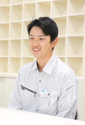 若手スタッフ紹介「一歩先の仕事をさせてもらえるので、升川建設にはスキルアップができる環境があると思います」と、開口一番力強く話してくれました。入社6年目にして大きな現場を担う一員として大変な業務をこなす中、その表情からは憧れの仕事への誇りと充実感がうかがえます。