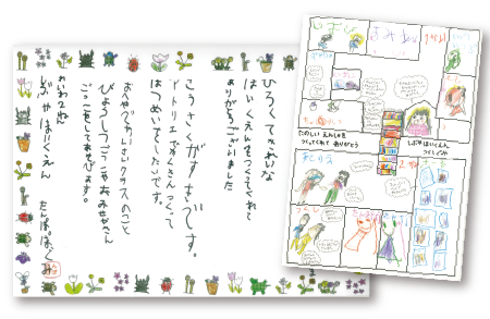 新しい園舎を使った園児から届いた絵と手作りの感謝状。つくったものを利用した方からの声を聞けるのはとても嬉しいです。