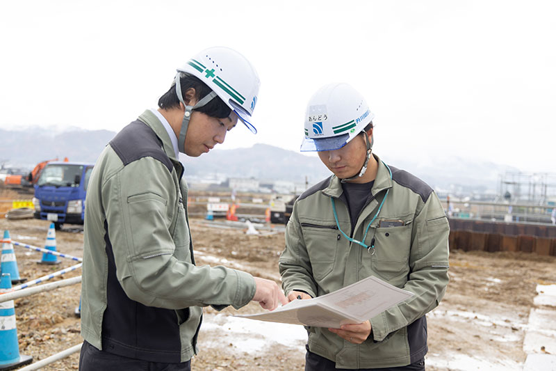 公共工事の入札や、民間企業に対する工事の受注活動を行います。決まったモノを売る営業ではなく、案件ごとにお客様の考えや課題を丁寧にヒアリングし、提案や交渉を重ねながら工事受注を目指します。お客様と会社をつなぐ架け橋として、社内外と連携しながらプロジェクトを進めていきます。受注後も、工事着工から完成後のメンテナンスまで継続的に関わり、長期的な信頼関係を築きながら、次の案件へとつなげていきます。自分が携わった仕事が形として残り、大きなやりがいを感じられる仕事です。
